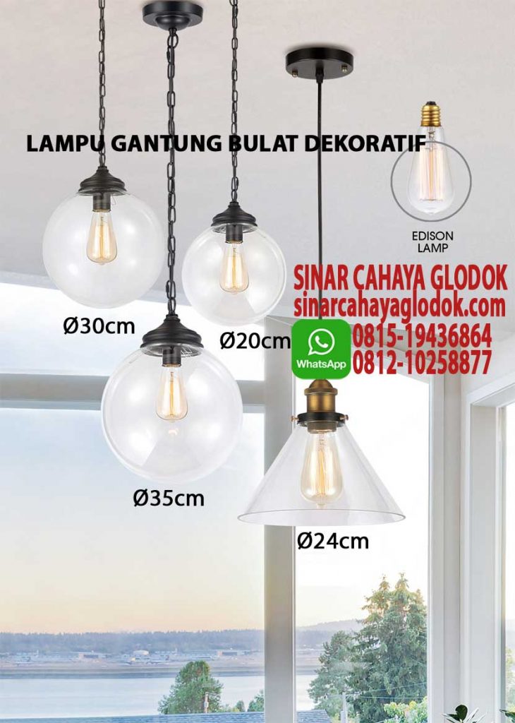 Lampu Gantung Bulat Dekoratif Bening, jenis lampu gantung dekoratif yang indah dan menawan & lampu dapat dipakai berbagai jenis LED.